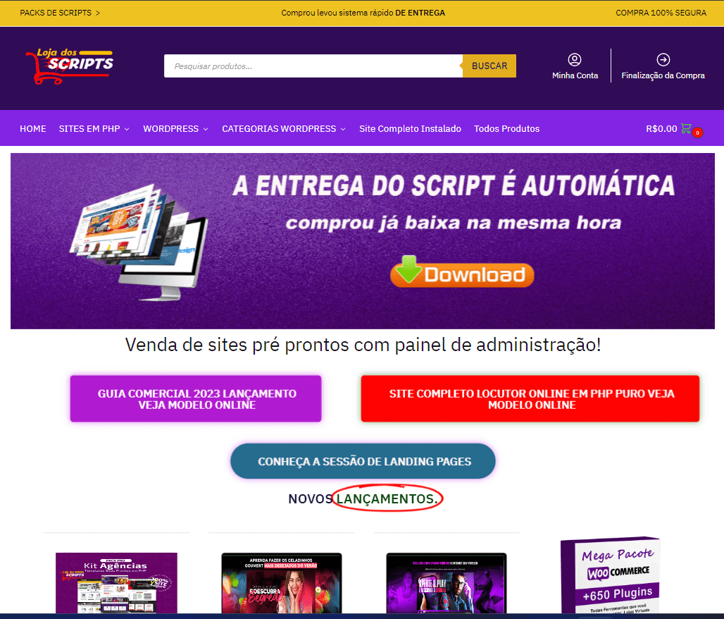 Loja Virtual completa para vendas de produtos digitais, com entrega automática via download, uma cópia perfeita de nossa loja dos scripts, basta inserir seus produtos e fazer as configurações e sua loja já estará pronta para vender e faturar muito na internet,